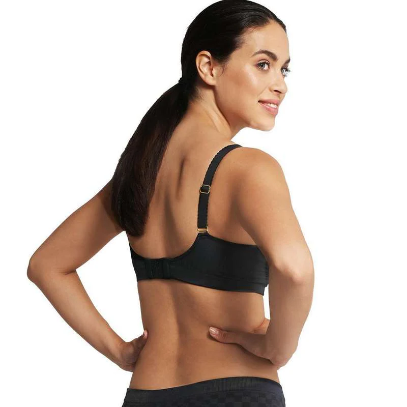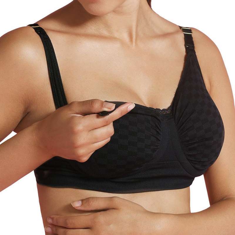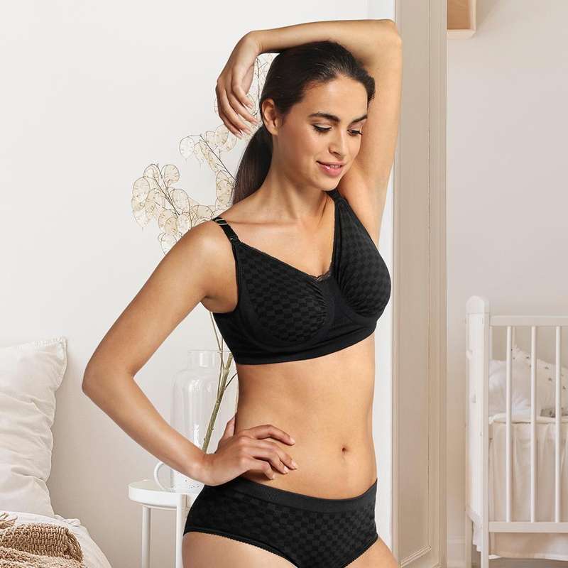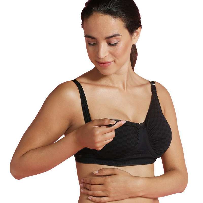Ammnings-bh:n är i mjukt sömlöst microfiber material som är ventilerande. Den har en perfekt passform, som ger en snygg silhuett med den revolutionerande GeléBågen. Knapparna kan öppnas med en hand, och den är justerbar med medföljande bh-förlängare. Få mer stöd och komfort med 3-häkt-låsning. Ökad komfort med breda band, samtidigt som GeléBågen följer förändringarna i storlek och form, och förblir mjuk och smidig.