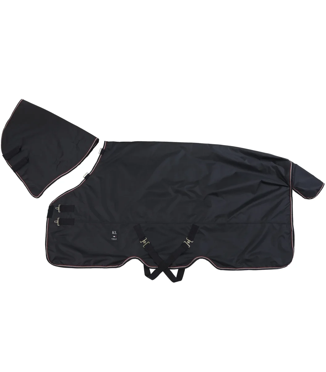 Detta utegångstäcke med avtagbar hals från Kingsland Classic, är tillverkad i 100% stark och hållbar polyester rip-stop-tyg. Täcket har vattenavvisande och vindtätt yttertyg och är isolerat med 100g polyesterfyllning. Täcket har en stor svanslucka som håller hästen varm, torr och väl skyddad. För att hålla täcket bekvämt har det justerbara kryssgjordar.