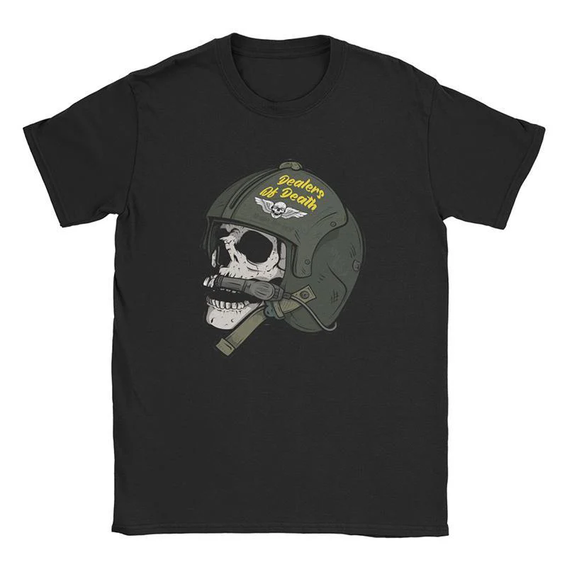 Upptäck denna krigiska och mångsidiga svarta Dödskalle T-shirt med skallen från en amerikansk stridspilot. ”Dealers Of Death!”