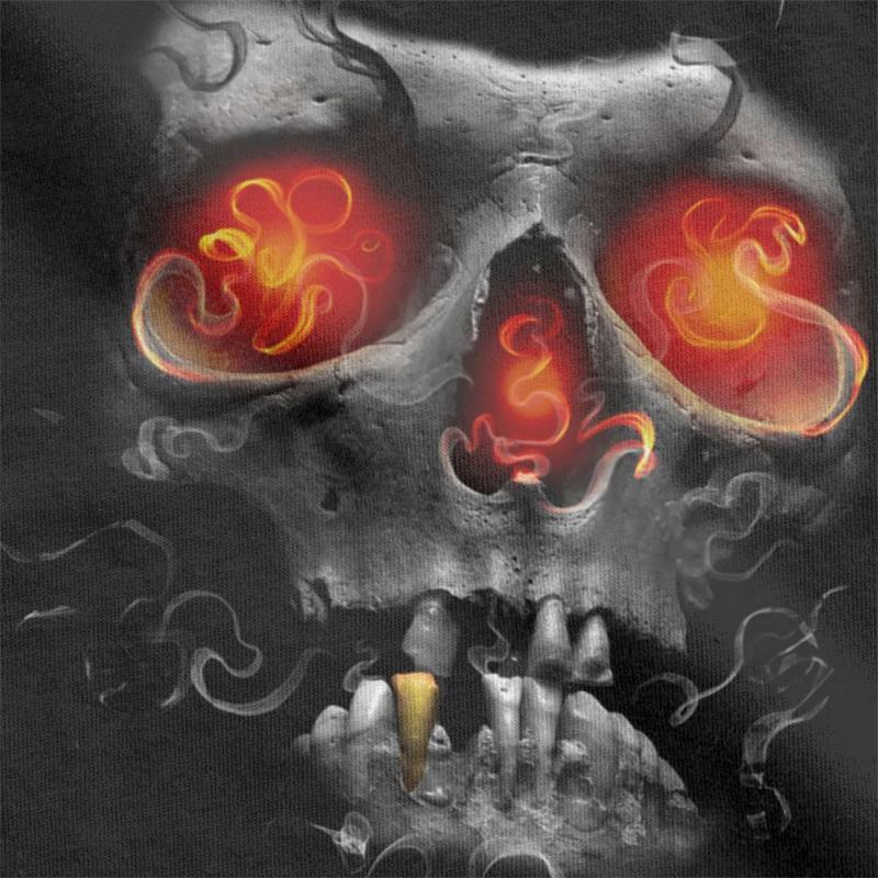 T-shirten har dödskallemotivet Up In Smoke tryckt på bröstet. Tröjans motiv består av en mänsklig dödskalle med röd rök i båda ögonhålorna samt i näshålan. Dödskallen har nästan inga tänder kvar och en tand utgörs av en guldtand.