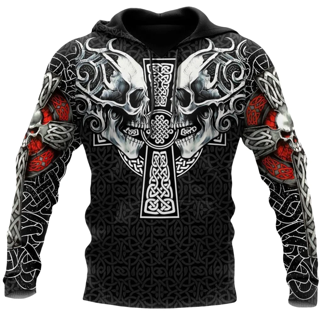 Tröjan är svart och har mönstret Celtic Skulls tryckt på plagget. Motivet föreställer två dödskallar framför ett större kors med keltiska knutar. På ärmarna finns det tryckt dödskalle-kors och keltiskt knutverk.