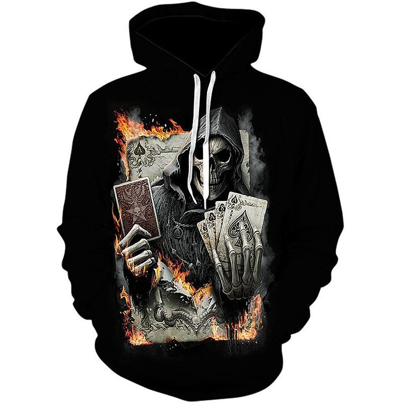 Det här är en snygg dödskalle hoodie med luva och justerbara band. Tröjan är producerad i en mjuk polyesterkvalitet gjord av 90 % polyester och 10 % spandex.