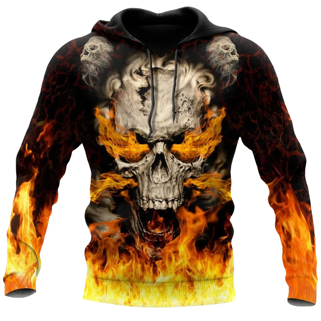 Tröjan finns i en mängd olika storlekar, så tveka inte på att addera ett eldigt plagg till din garderob med denna dödskalle tröja med eldslågor.