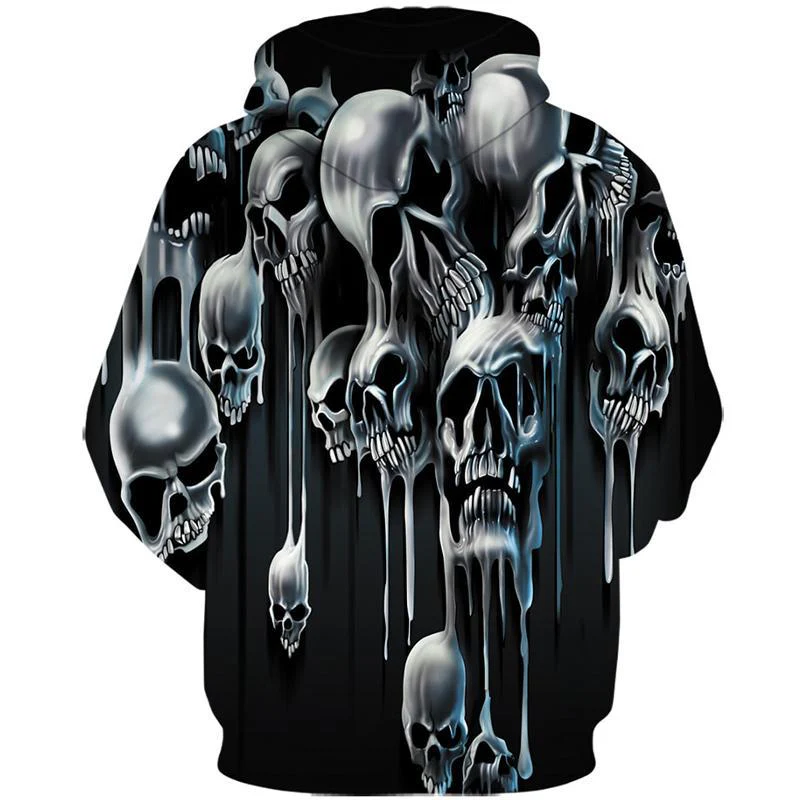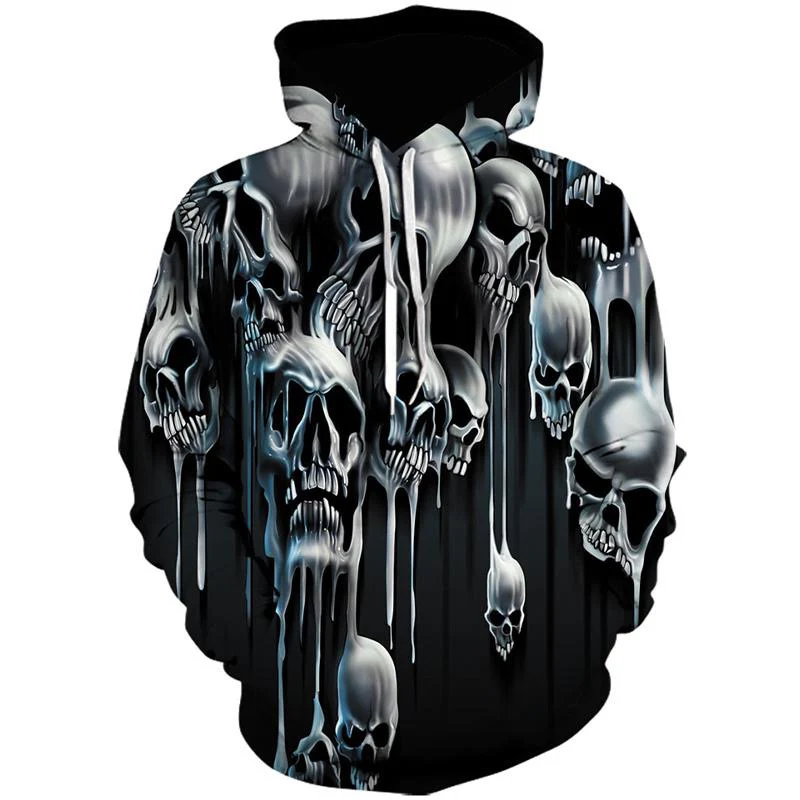 Det här är en snygg dödskalle hoodie med luva och justerbara band. Tröjan är producerad i en mjuk polyesterkvalitet gjord av 90 % polyester och 10 % spandex.