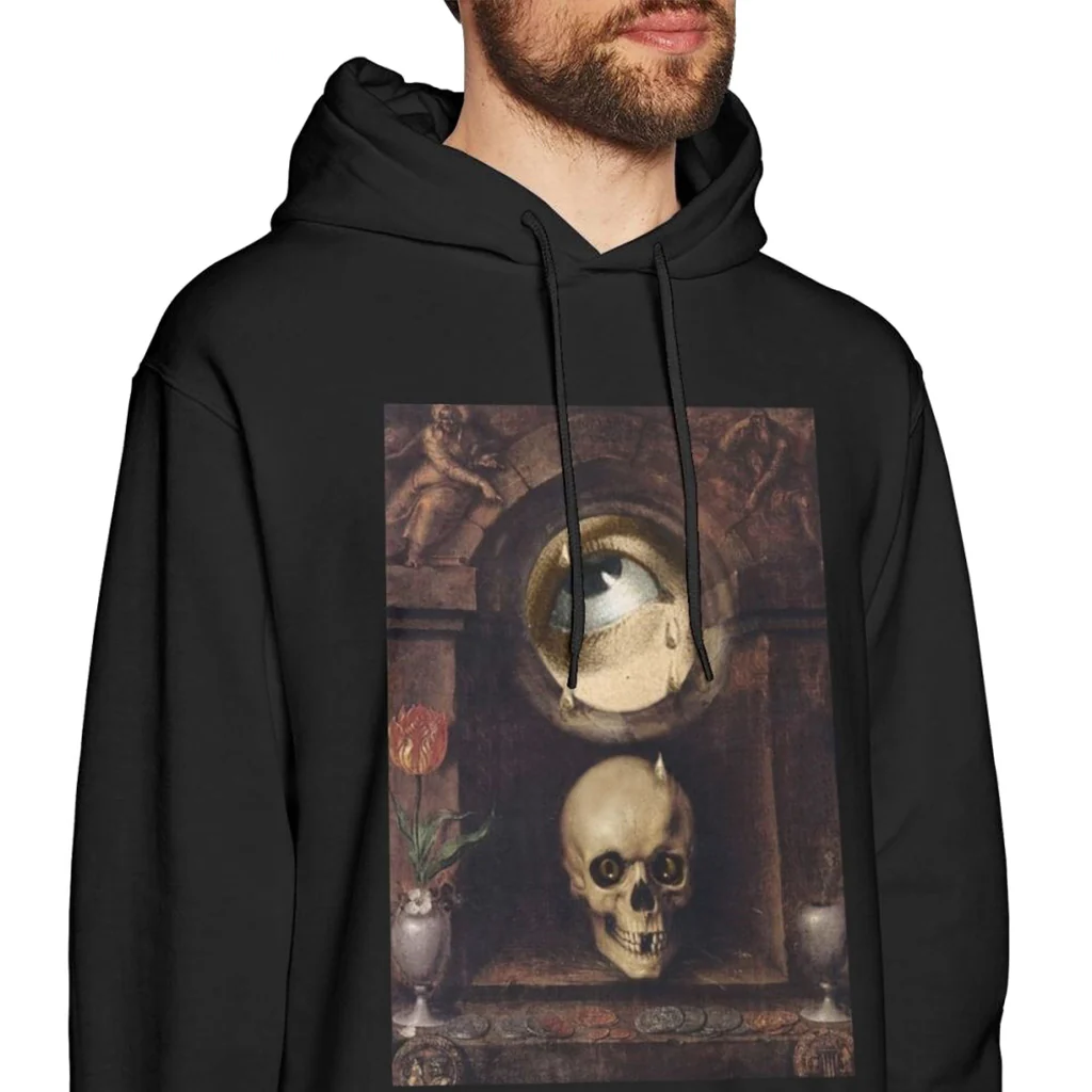 Det gråtande ögat på denna mångsidiga Dödskalle Tröja vittnar om ett liv som inte levdes fullt ut. ”Den enda verkliga upptäcktsresan består inte i att besöka nya landskap, utan i att se saker med nya ögon.”