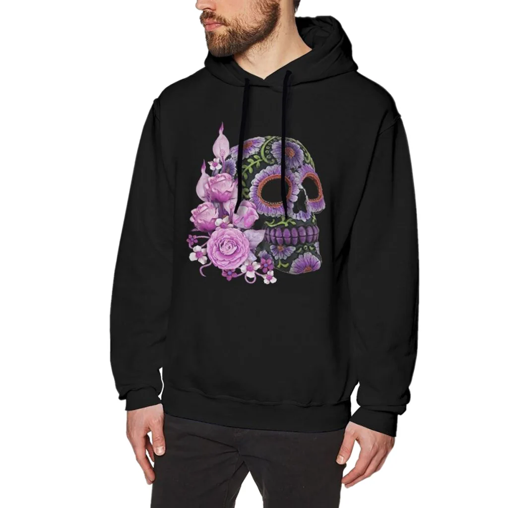 Det här är en svart dödskalle hoodie med luva och justerbara band. Tröjan är producerad i en mjuk bomullskvalitet av 100% bomull. Huvtröjan har motivet Pink Floral Skull tryckt på bröstet.