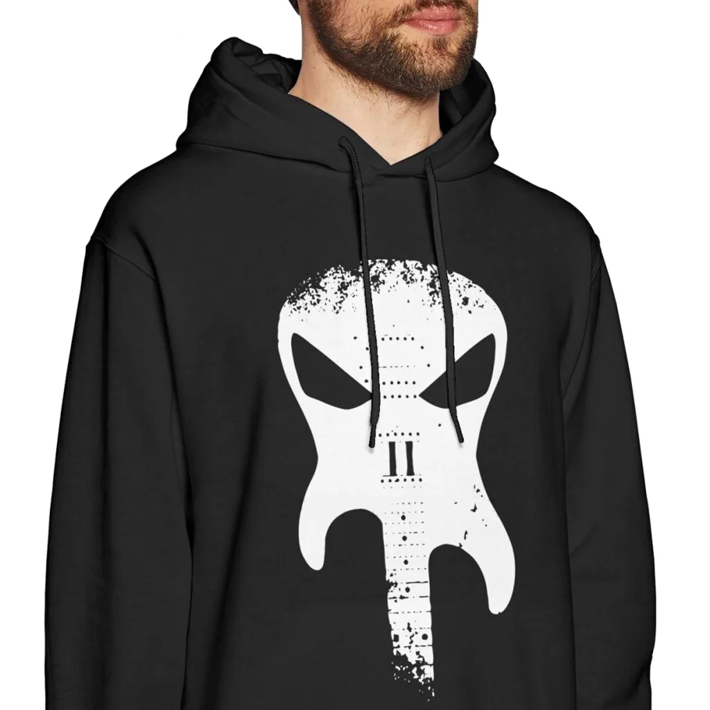 Luvtröjans design består av en vit dödskalle som har formen av en elgitarr. En tuff huvtröja med ett annorlunda dödskallemotiv som garanterat kommer få blickar.