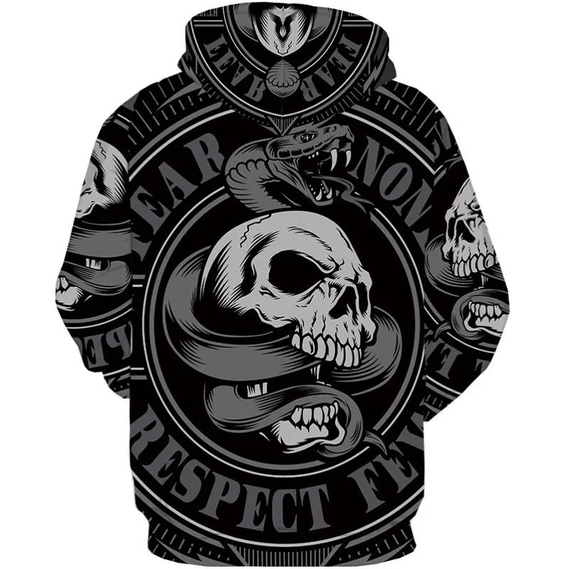 Iögonfallande Dödskalle-Tröja med ett heltäckande reptilmotiv. Förbered dig för att ingjuta skräck i dina motståndare och beordra respekt.