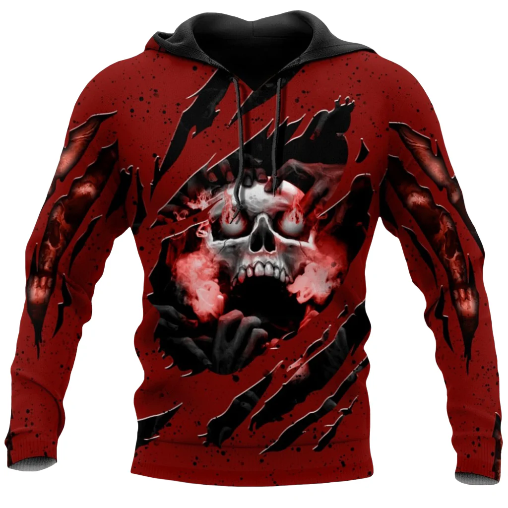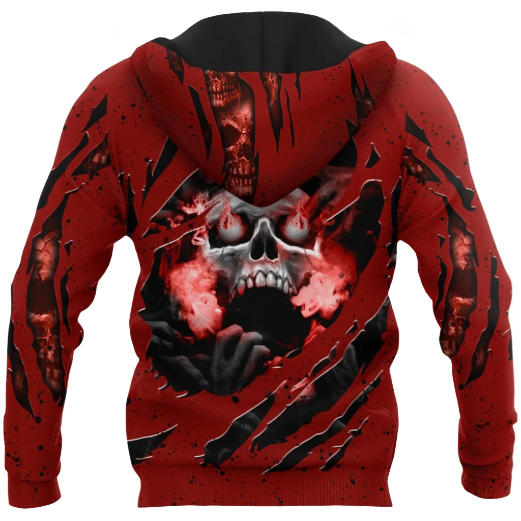 Denna röda dödskalle tröja är ett utmärkt plagg att bära när du vill ha något som inte bara är bra för kallt väder, utan som också är rikt på gotiska detaljer och stil. Motivet är tryckt på både framsidan och baksidan av plagget.