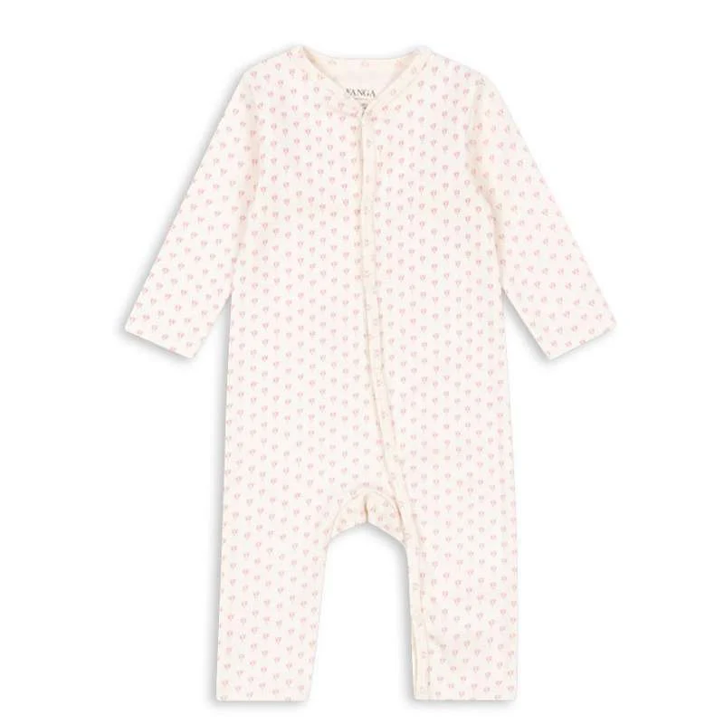 Blød heldragt i økologisk bomuld til nyfødte. Med trykknapåbning i fuld længde foran og ned langs benet, hvilket gør det nemt og bekvemt at skifte din baby.