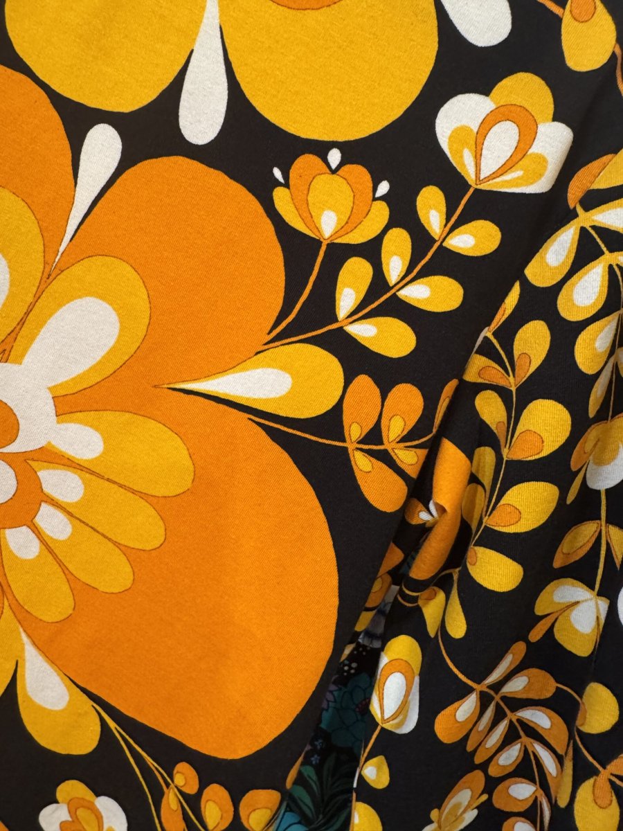 Tyg svart/orange/gul Retroblomma ”Veronica”