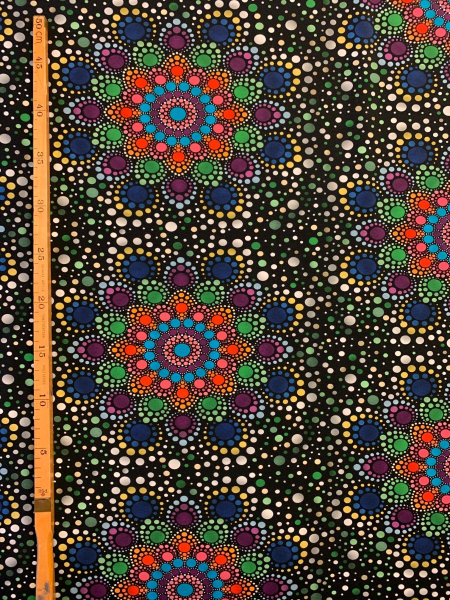 Tyg ”Madala prickigt” svart/flerfärgat, extra kostnad detta tyg 100:-
