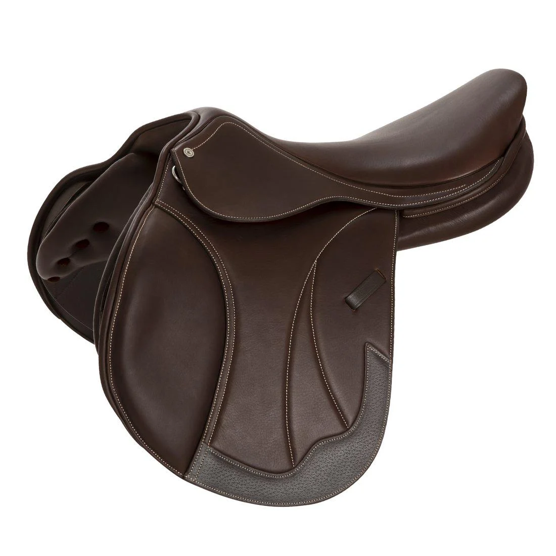 En populär hoppsadel i infettat dubbelt kalvskinn med bred kanal och WoolFlex-stoppning som ger jämn och fin stoppning. Flyttbara knästöd. Syntetbom med utbytbara koppjärn. Storlek: 16,5”, 17”, 17,5”
