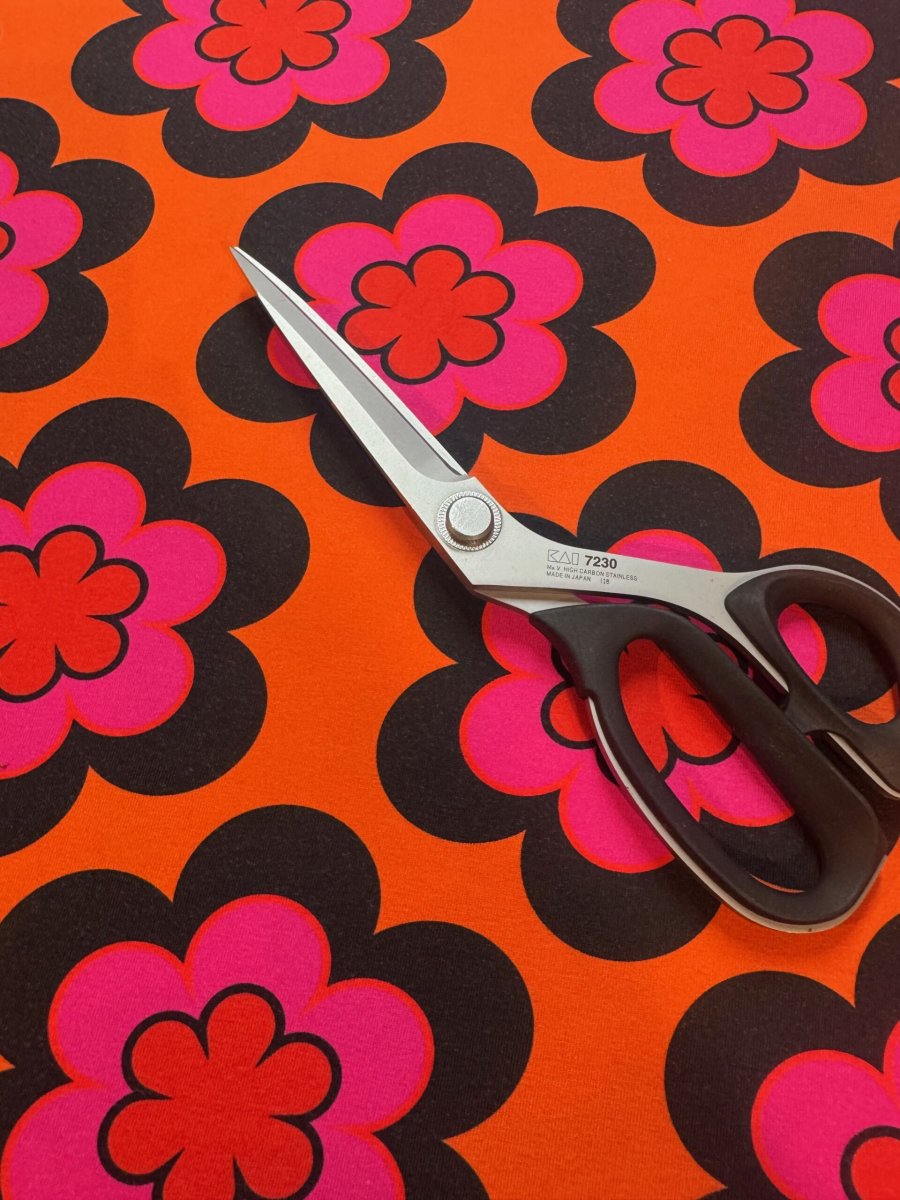 Bli först med att recensera ”Klänning Brita, orange/rosa Retroblomma”