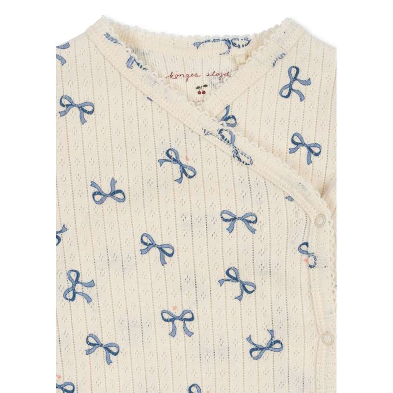 Kropp gjord av certifierad 100% ekologisk bomull. Har en praktisk omslagstängning som gör det enkelt att klä ditt barn. GOTS, Ekologisk, certifierad av CU1094701