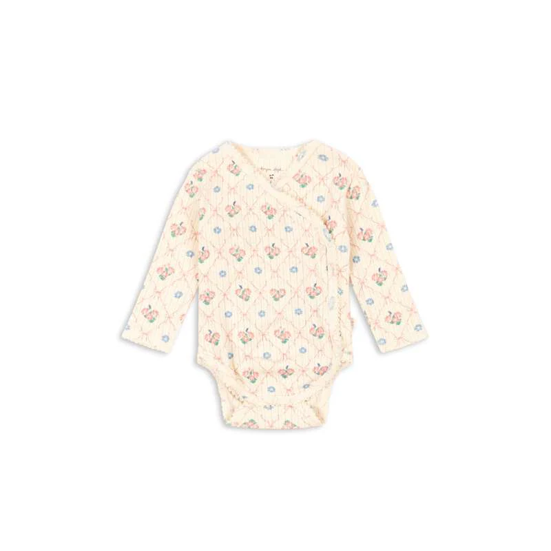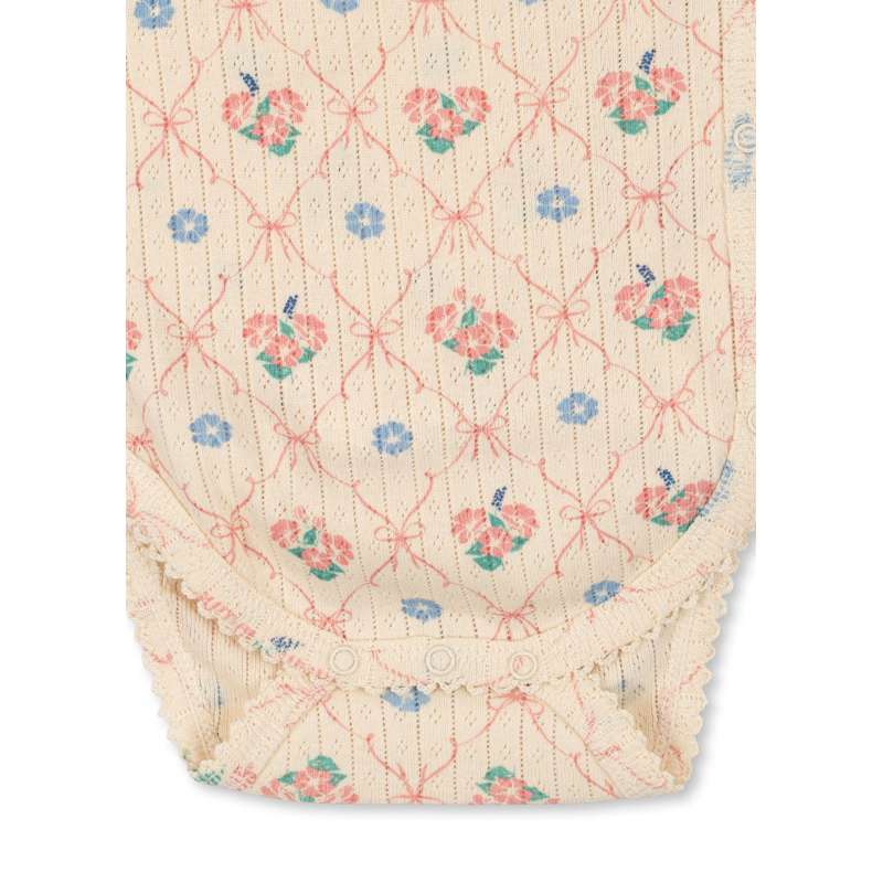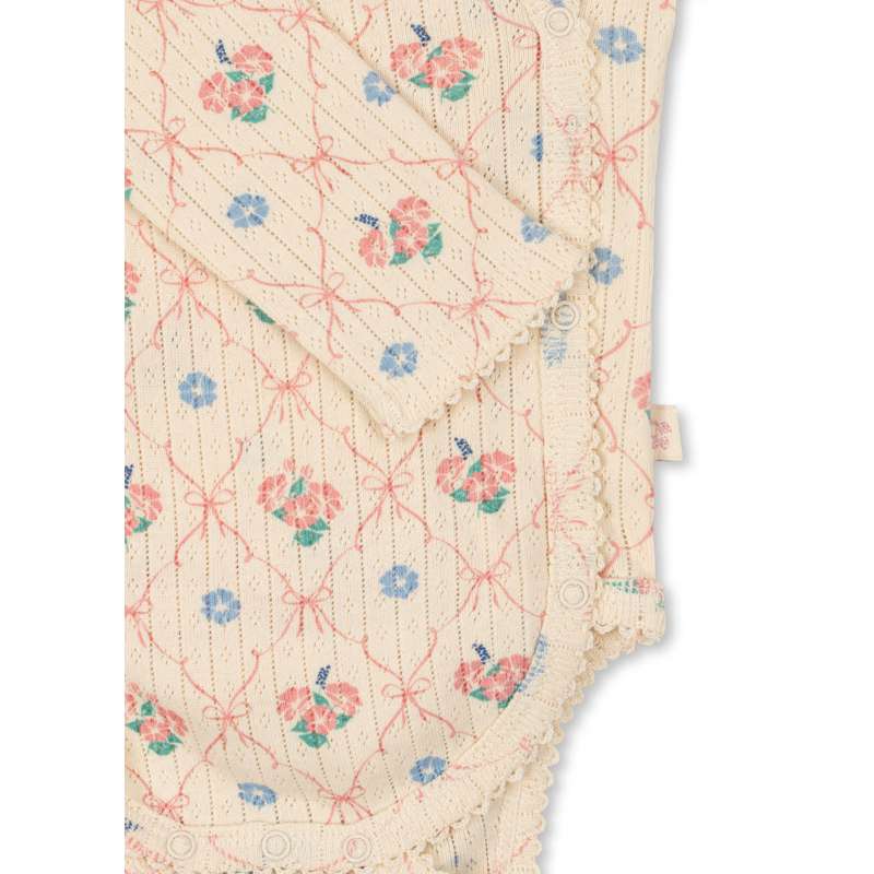 Mjuk kropp med dekorativ punktstickning och lätt omslagstängning. Tryckknappar längs kroppen och gren för enkel påklädning. Tillverkad av 100% ekologisk bomull. GOTS, Ekologisk, certifierad av CU1094701.