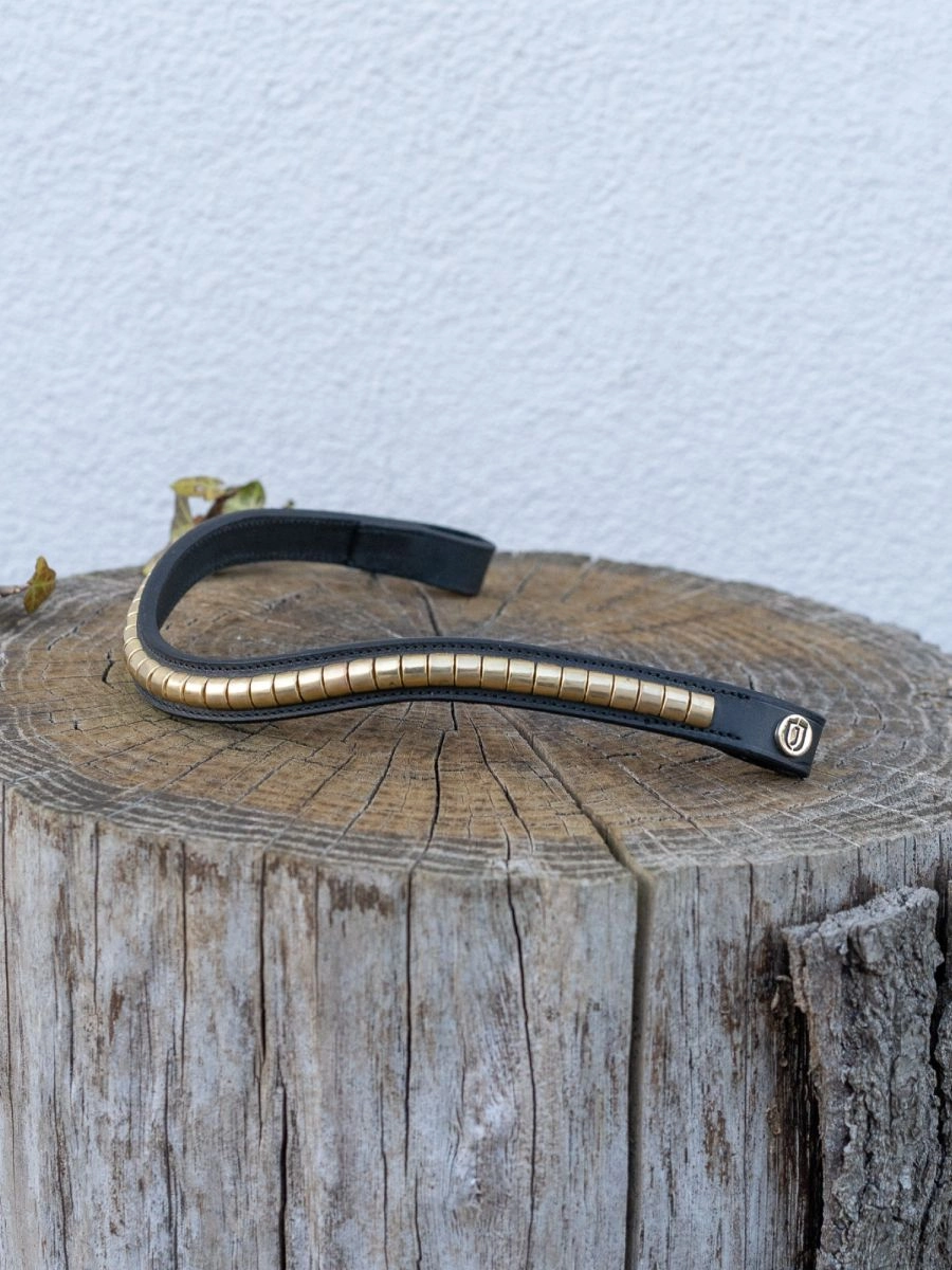 Svängt pannband med stora klinkers i mässing. Smakfullt och stilrent för att ge de små extra detaljerna.