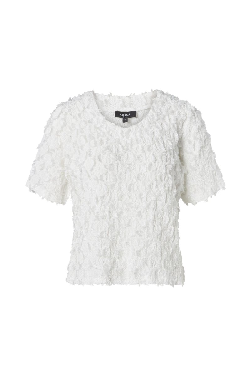 Användbar topp i stretchigt material med rutmönstrad struktur som är behaglig mot kroppen. Klassisk passform med något insvängd midja, halvkort ärm och en rund halsringning med bred kant. Längden i storlek S är 56 cm från högsta punkten. Modellen på bilden är 178 cm lång och bär storlek small.